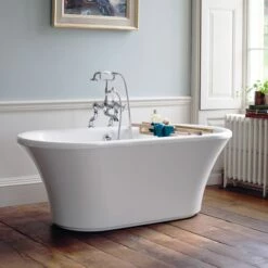 To complete a contemporary, stylish and minimalistic bathroom design, the Brindley Double Ended Bath with Surround by Burlington will certainly deliver. The timeless design has been thoughtfully updated with the smooth and graceful shape of the surround. Perfect for two, this inviting double-ended freestanding bath has gradually sloping sides with a generous interior capacity. Pair with a floor standing or wall mounted bath mixer tap for a look you will adore for years to come.