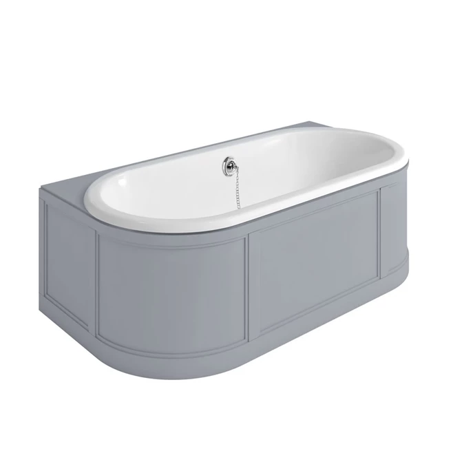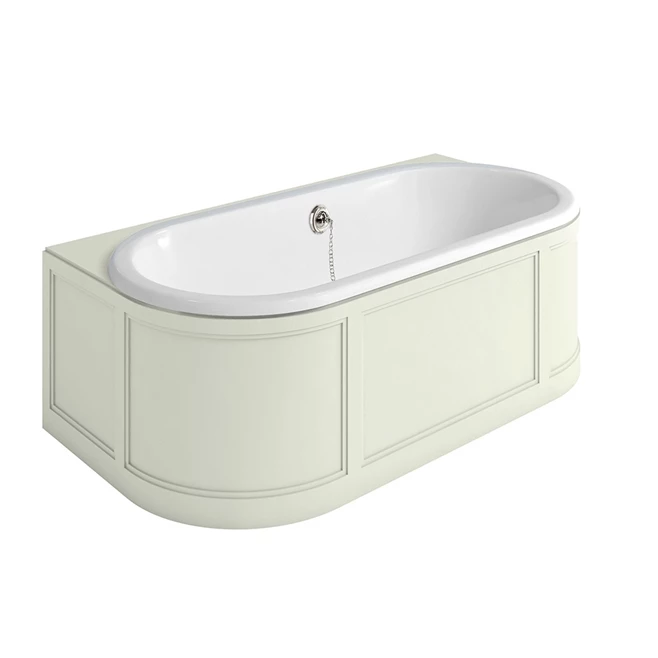 A beautiful addition to your new bathroom, this London Back to Wall Bath with Curved Surround, Overflow and Waste will make an elegant statement in keeping with your new timeless Burlington bathroom. Designed to be mounted against your bathroom wall, the exquisitely detailed wooden panel surround will beautifully enclose your bath. Available in the two Burlington signature colour finishes – Sand and Classic Grey – you’ll be able to complement the rest of your Burlington furniture, creating a cohesive design you’ll be sure to enjoy for years to come.