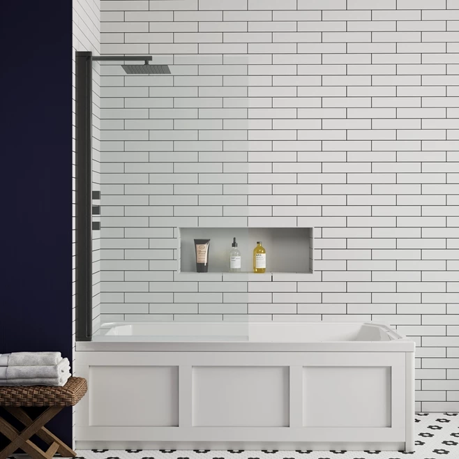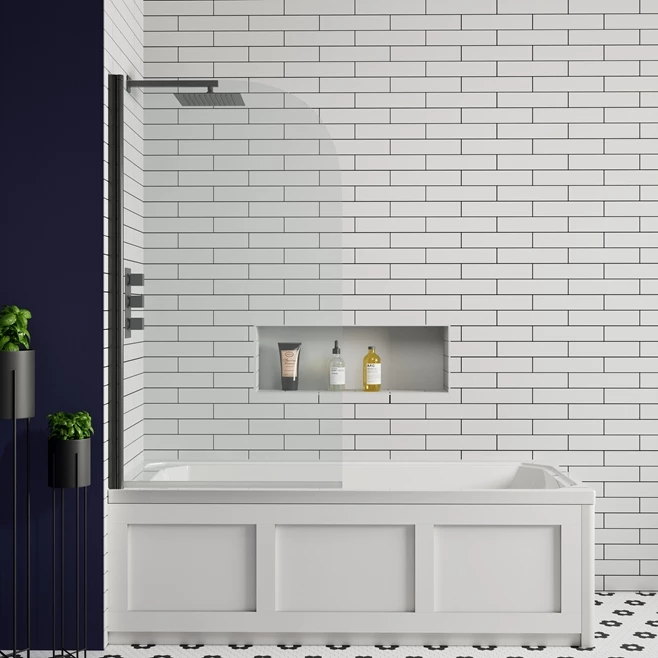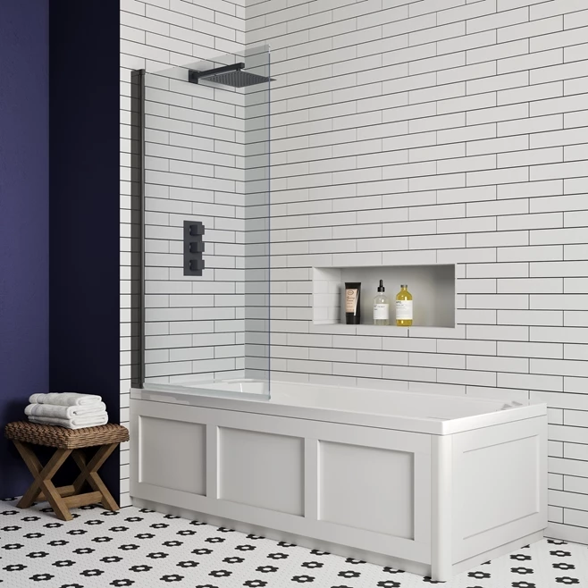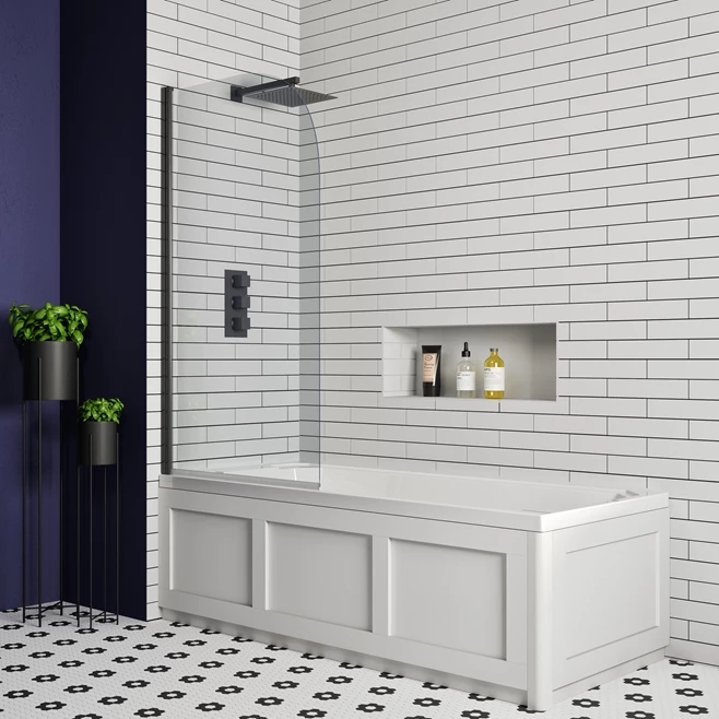 Matt Black Square Corner Bath Screen