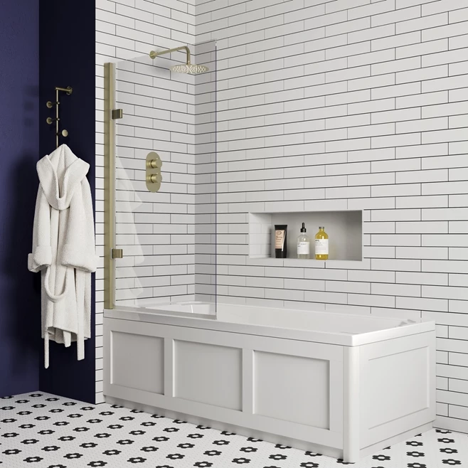 Brushed Brass Square Corner Bath Screen