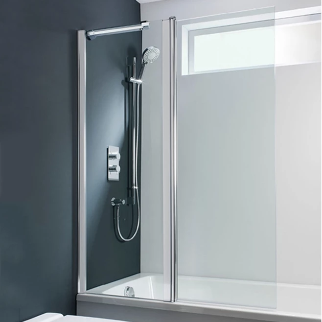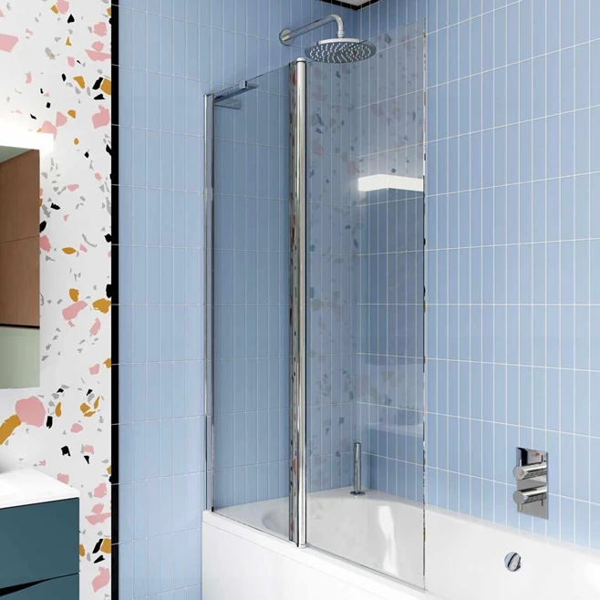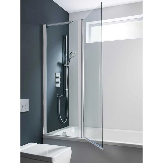 The Crosswater Design double outward opening bath screen features a frameless toughened 6mm glass outward-opening panel, connected to a semi-frameless fixed panel with an anodised aluminium profile and a reversible design with 20mm adjustment for an incredibly strong bath screen that’s easy to install, a pleasure to use, and effortless to clean.