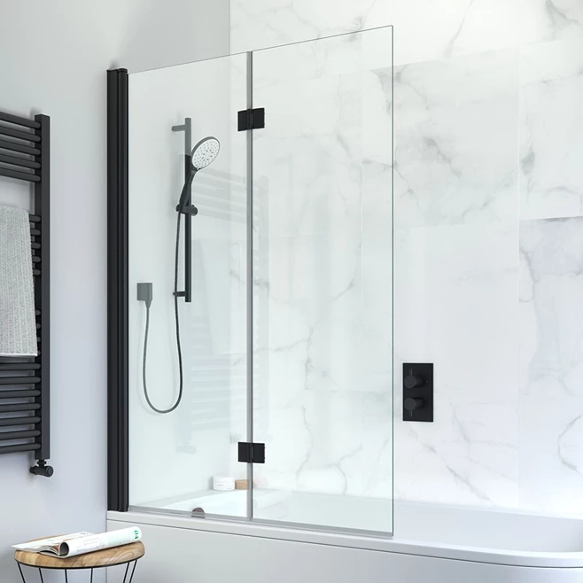 Crosswater Design+ Matt Black 8mm Easy Clean Double Folding Bath Screen – 1500 x 1060mm