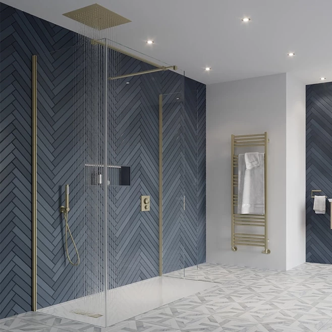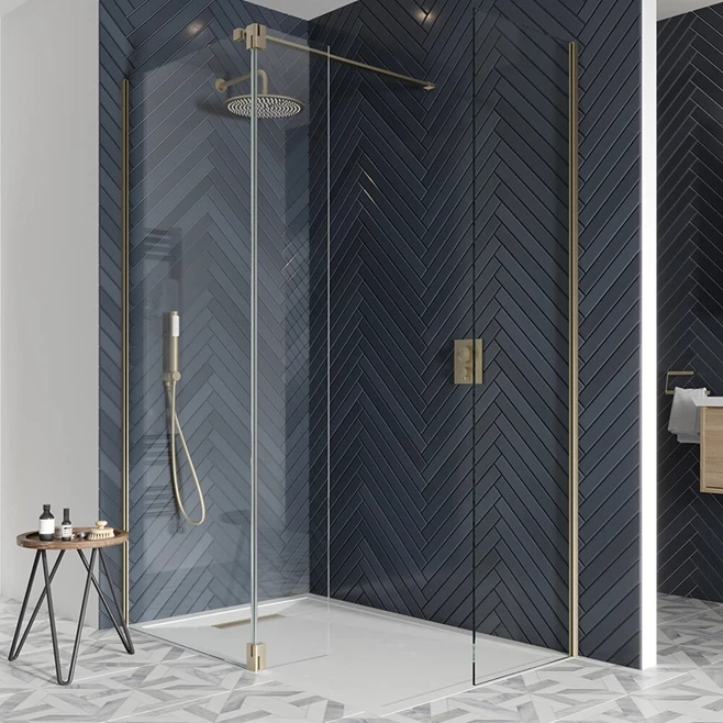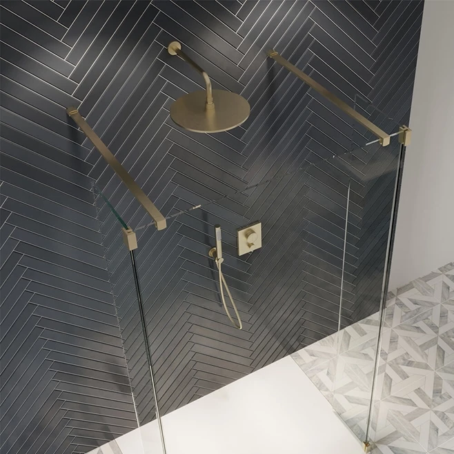 Crosswater Gallery 8 Walk In Enclosure in Brushed Brass finish offers a unique flexibility in designing your perfect shower enclosure. Choose from a variety of configurations to find a perfect match for your bathroom space.