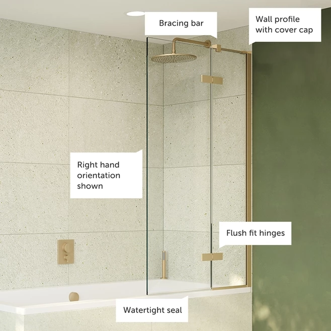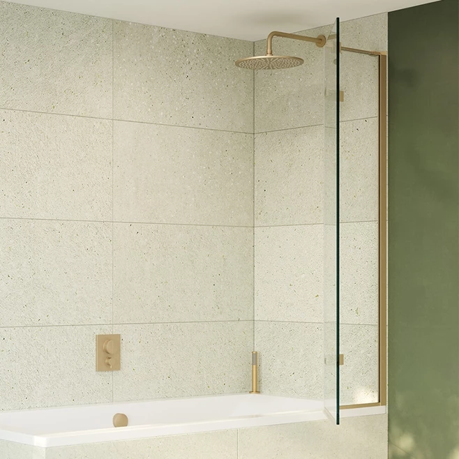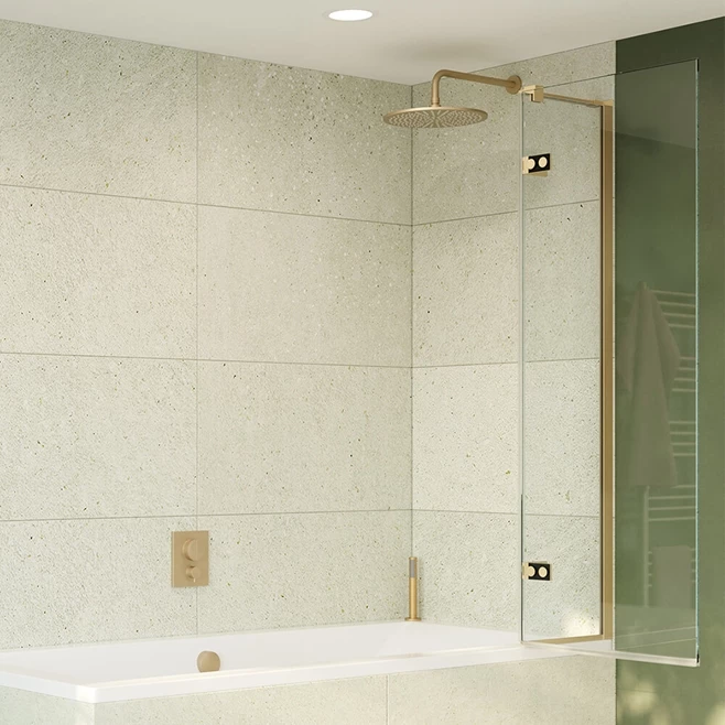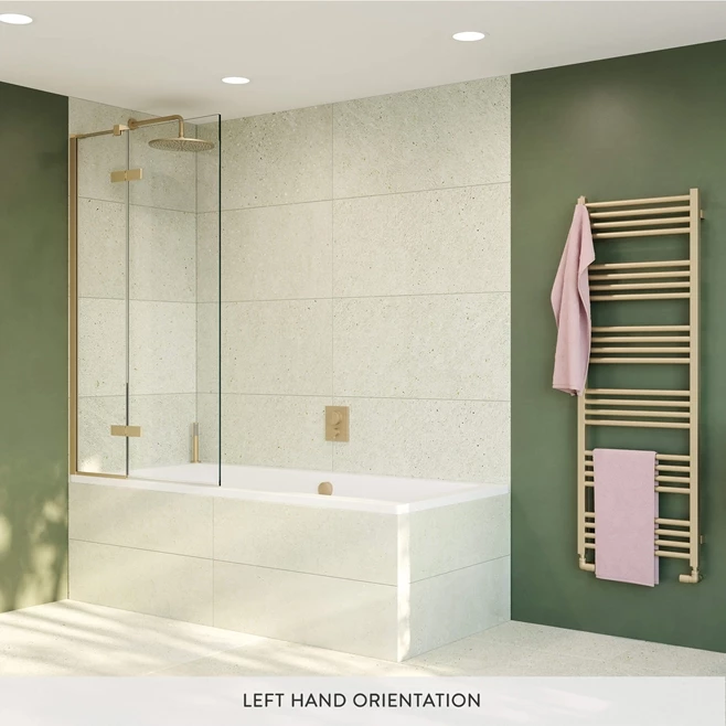 Crosswater Optix 10 Hinged Bath Screen with Inline Panel – Brushed Brass – 1500 x 900mm