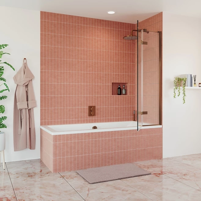 Crosswater Optix 10 Hinged Bath Screen with Inline Panel – Brushed Bronze – 1500 x 900mm
