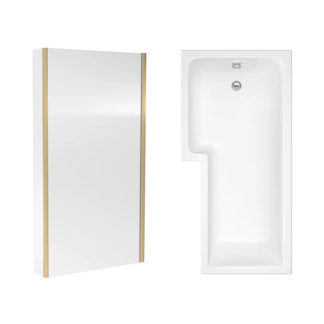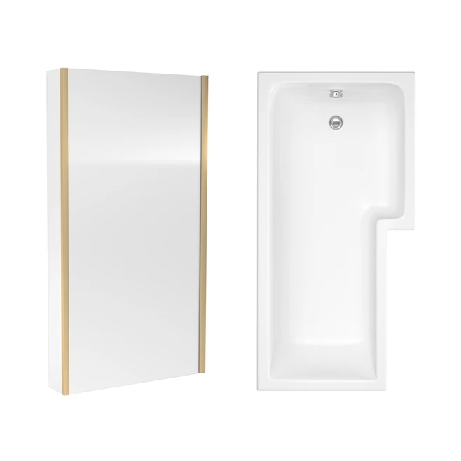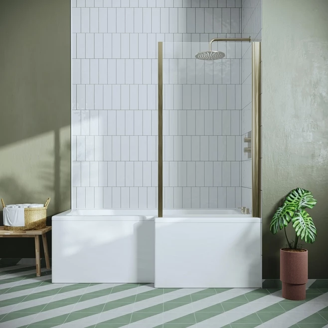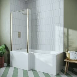 Drench L Shaped Shower Bath with Brushed Brass Shower Screen & Panel – 1700mm