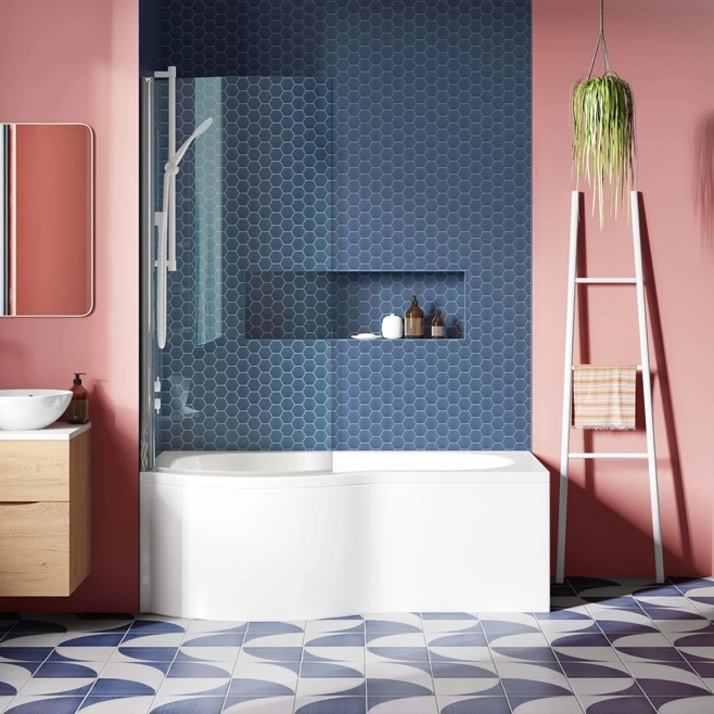 Drench P Shaped Shower Bath with Front Panel and Shower Screen – 1500mm