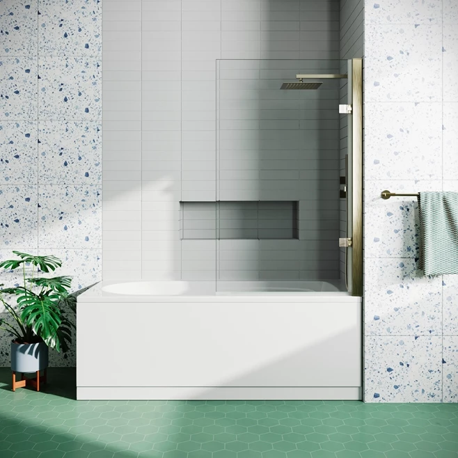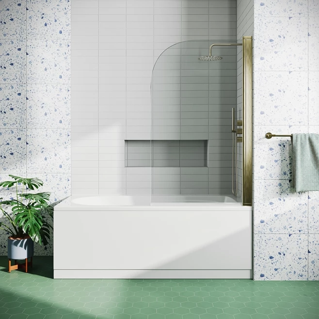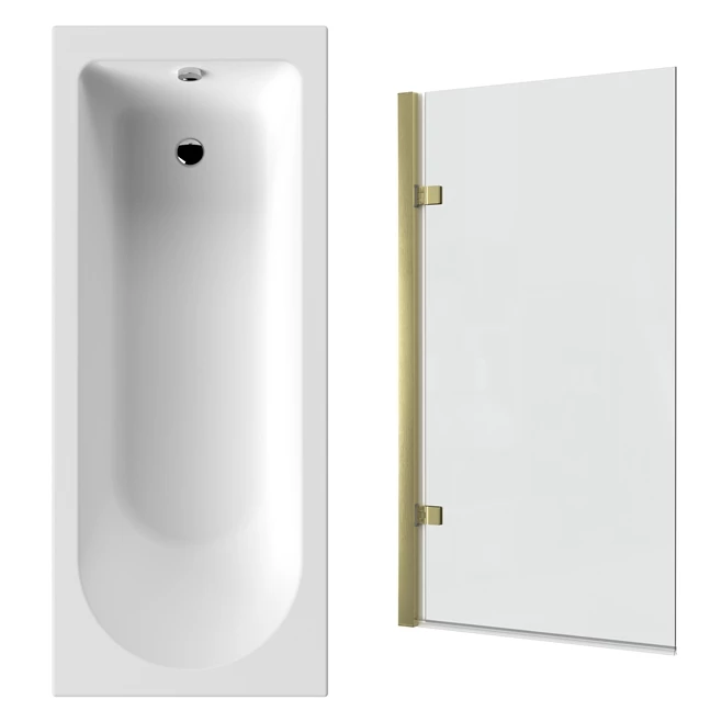 Drench Straight Single Ended Curved Bath & Brushed Brass Shower Screen Drench Straight Single Ended Curved Bath
