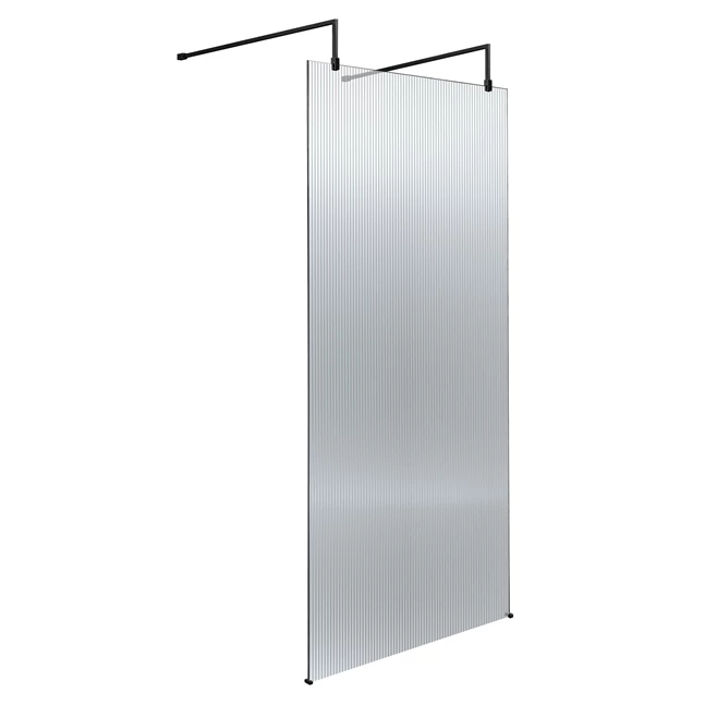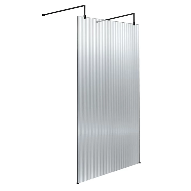 Harbour Contour Fluted Matt Black Freestanding Walk In Panel & Two Support Arms