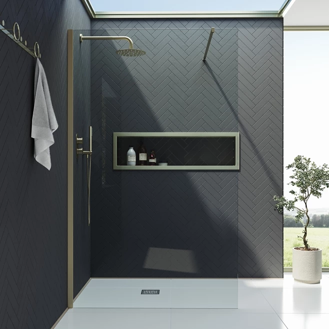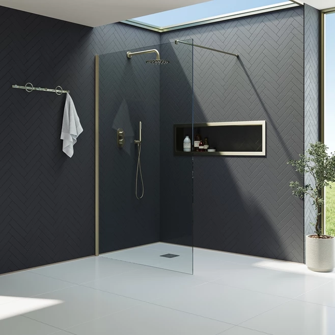 Harbour i10 10mm Easy Clean 2m Tall Wetroom Panel – Brushed Brass