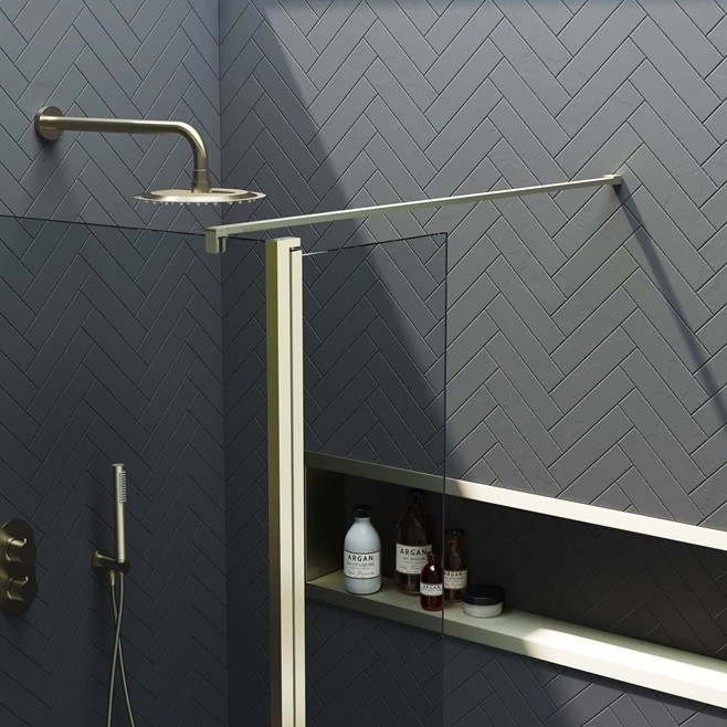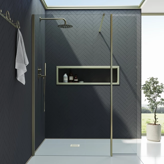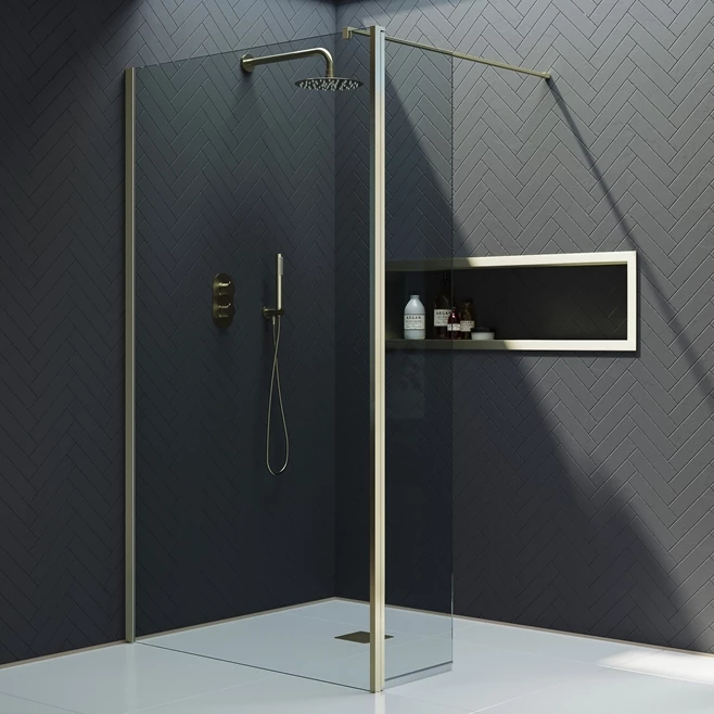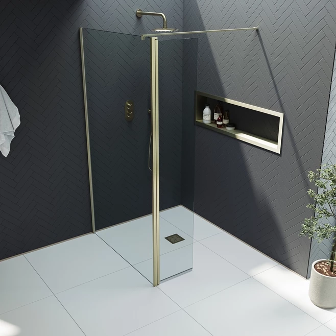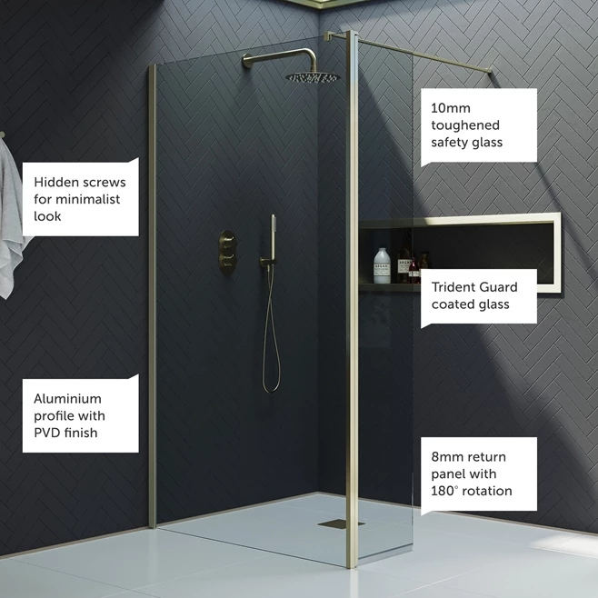 Harbour i10 10mm Easy Clean 2m Tall Wetroom Panel & Hinged Return Panel – Brushed Brass