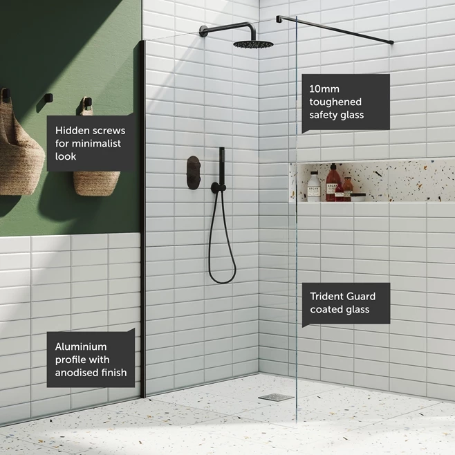 • Trident Guard coated glass stops grime & limescale for easy cleaning and maintenance