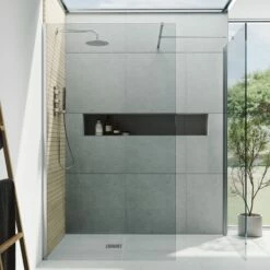 With its contemporary matt black finish and sleek clear glass, we don’t need to tell you how beautiful this walk in shower panel and flipper panel looks, so why don’t we tell you how great everything else about it is? Acqua Shield easy clean glass aids the prevention of limescale, dirt, and soap build up, whilst 8mm toughened safety glass means you can rest easy knowing the excellent quality of your shower panel. The support arm included can be cut down to suit the required size, and of course the 6mm moving flipper panel can be adjusted both inwards and outwards by 180°. Convenience and style together in one shower panel? If only every bathroom could be so luxurious and innovative as yours.