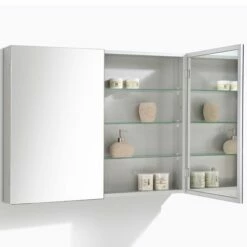 Able to bring a sense of opulence in any bathroom, this cabinet comes with mirrored sides that will enhance the style of your restroom. The sensor switch makes it easy for you to turn on and off the LED lighting, the charging socket will accommodate any electrical devices you need and once you try the soft close hinges, you will want them on everything in your home.