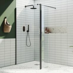 Harbour I10 10mm Easy Clean 2m Tall Wetroom Panel & Hinged Return Panel – Matt Black