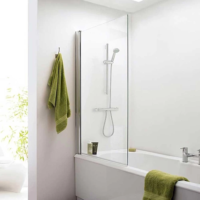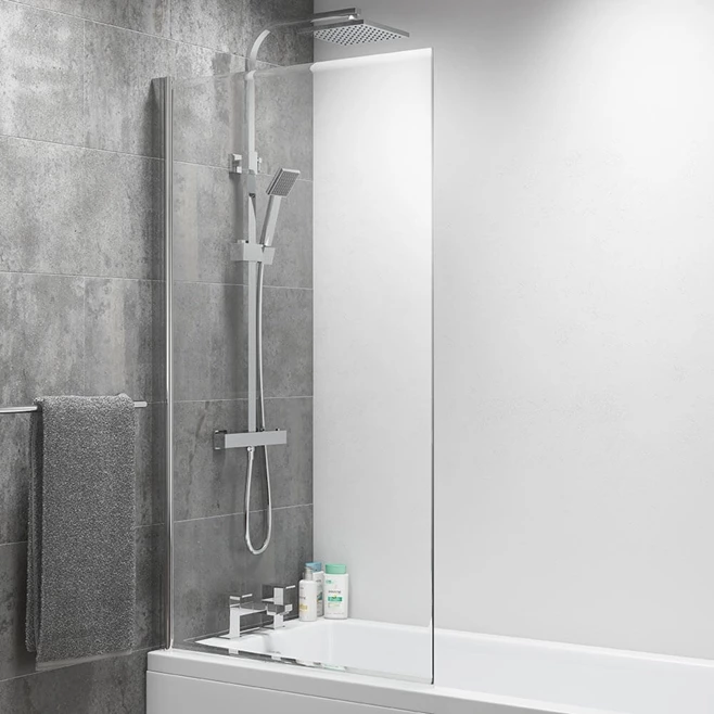 Beautifully designed for modern bathrooms, this hinged square top bath screen features 6mm toughened glass, adjustable fittings for out of true walls and a reversible design to suit your bathroom layout.