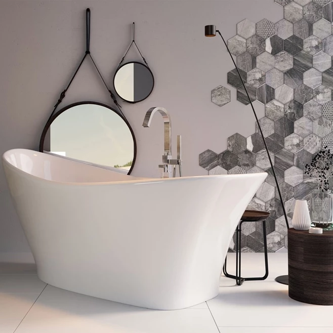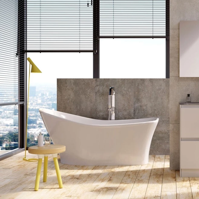 This is not just any white bath. This bath has an artistic, sloped shape which really shows off its versatility and uniqueness. Available in 3 different finishes, it means any bathroom style can feature this truly extraordinary piece.